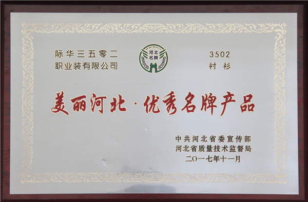 近期,际华3502公司“3502”牌衬衫获“美丽河北”优秀产品,进一步扩大了3502衬衫的知名度和影响力。