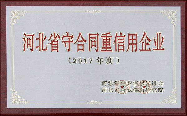 际华3514公司蝉联“2017年度河北省守合同重信用企业”荣誉称号