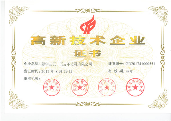 11月20日,经河南省科技厅、省财政厅、省国税局、省地税局层层评审,经全国高新技术企业认定管理工作领导小组办公室批复,际华3515公司荣膺“河南省2017年第一批高新技术企业”称号,这充分证明公司在核心知识产权、提升科技成果转化能力、科技人才培育等方面创造业绩得到国家的认可。