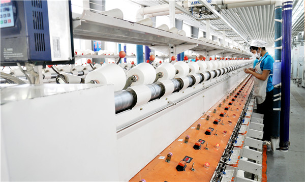 “董伦俊,我忙完了,你去收那台车纱,这台我帮你收”“好,媳妇。”